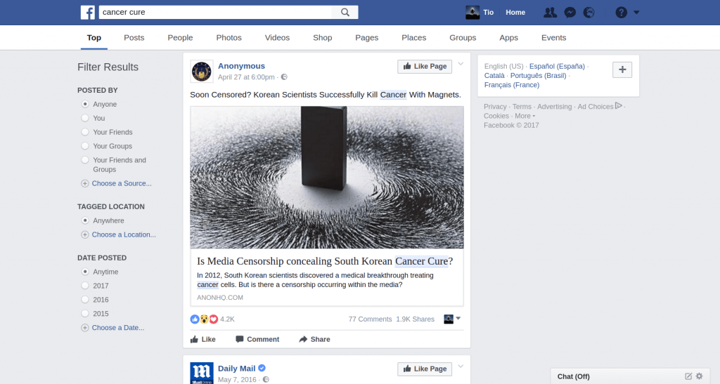 Κάνε μια αναζήτηση για “θεραπεία του καρκίνου” και σίγουρα θα βρεις εκατομμύρια θεραπείες.